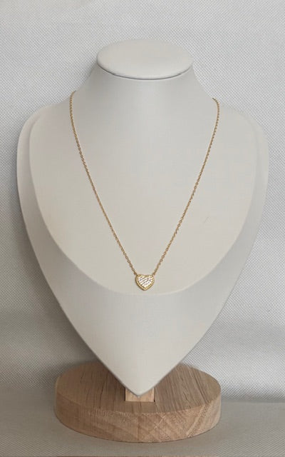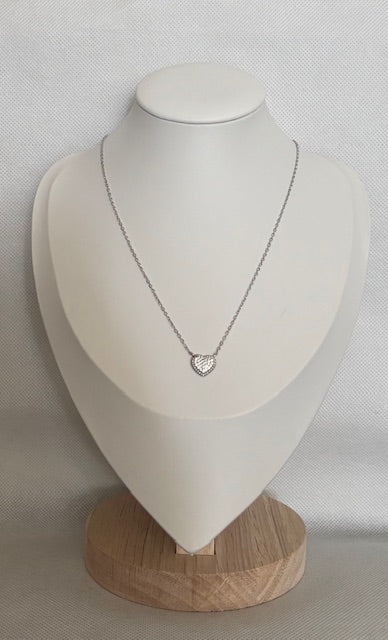 A delicate 925 starling silver necklace featuring silver pave heart pendant.